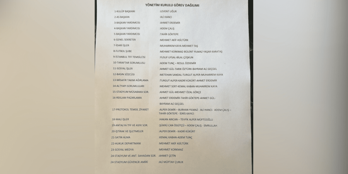 • Antalya TFF ve ASKF Sorumlusu: Şükrü Can Öğütçü, Adem Çalış, Emrullah Çakal