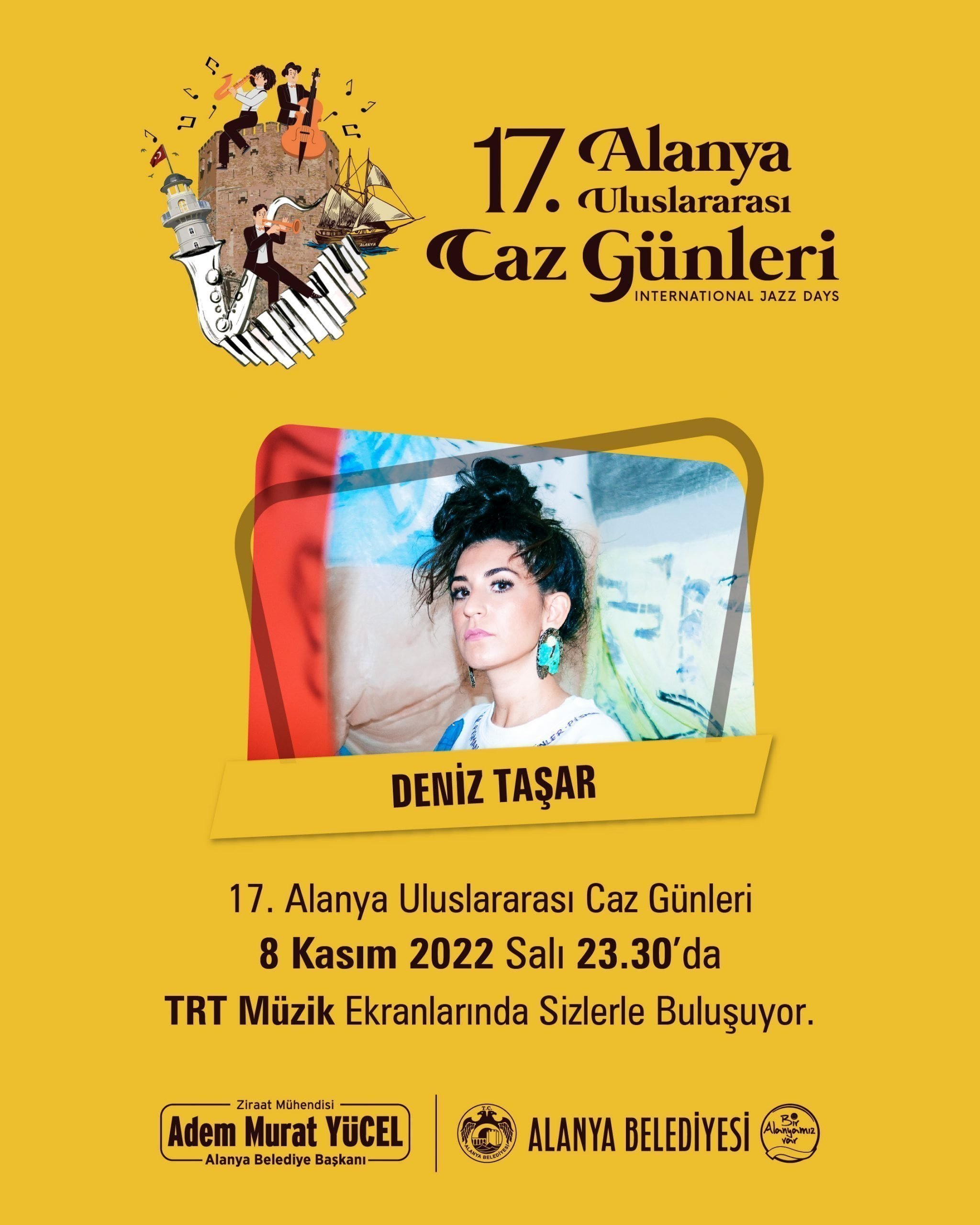 22-25 Eylül 2022 tarihleri arasında düzenlenen 17. Uluslararası Alanya Caz Günleri, TRT Müzik kanalında yayınlanmaya devam ediyor. 8 Kasım 2022 Salı (yarın) saat 23.30’da TRT Müzik kanalında, 17. Uluslararası Alanya Caz Günleri kapsamında 2. gün konser veren Deniz Taşar konseri yayınlanacak. Kendine has vokal tavrı ve ses rengiyle Türkiye’deki caz vokaline yepyeni bir soluk getiren ve son zamanlardaki üretimleriyle cazın sınırlarını oldukça genişleten şarkıcı, şarkı yazarı, tasarımcı ve multidisipliner bir sanatçı. Taşar’ın müziğini tek bir türle ifade etmek mümkün değil çünkü onun içinde, dinleyip sevip hissettiği farklı tarzlar var.