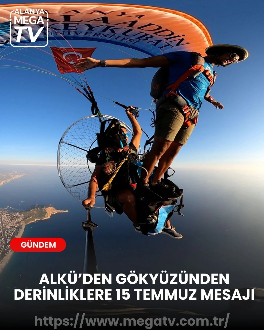 Alanya Alaaddin Keykubat Üniversitesi (ALKÜ), 15 Temmuz Demokrasi ve Millî Birlik Günü’nü kapsamlı ve etkileyici etkinliklerle andı. “Zaferin Adı Türkiye: Gökyüzünden Derinliklere Birlik Mesajıdır” sloganıyla düzenlenen anma programı, gökyüzünden deniz altına uzanan sembolik gösterilerle dikkat çekti. Türk bayrağı, para motor uçuşlarından derin dalışlara kadar birçok farklı etkinlikle dalgalandırıldı.