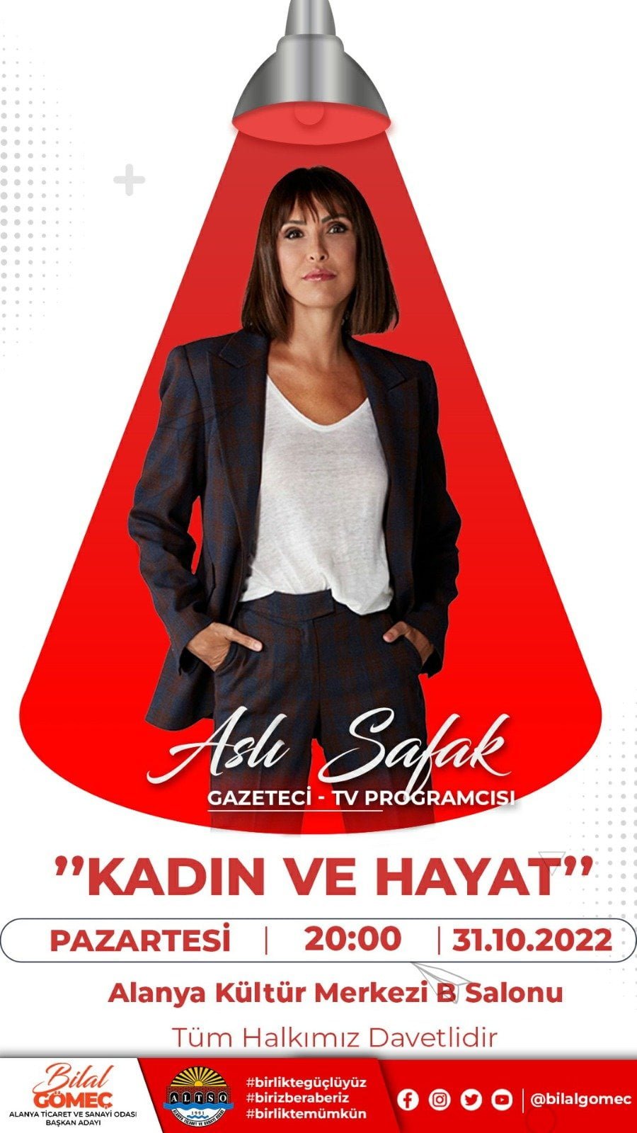 Alanya sevdası kapsamında pek çok önemli organizasyona imza atan ALTSO Başkan Adayı Bilal Gömeç, usta gazeteci, yazar ve televizyoncu Aslı Şafak’ı Alanyalılarla buluşturacak