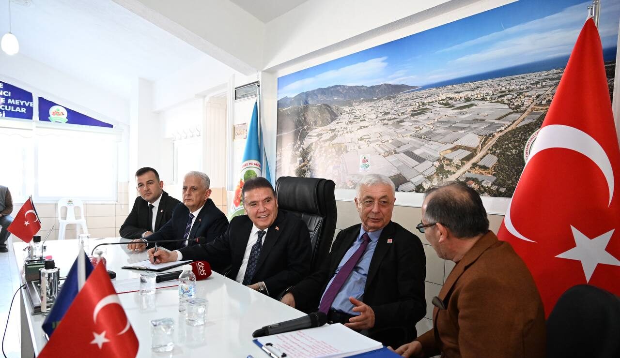 Antalya Büyükşehir Belediye Başkanı Muhittin Böcek, Demre Hal Komisyoncular Derneği Başkanı Mehmet Fatih Tural ve yönetim kurulu üyeleriyle bir araya geldi. Görüşmede, üreticilerin talepleri ve sektörün ihtiyaçları değerlendirildi.