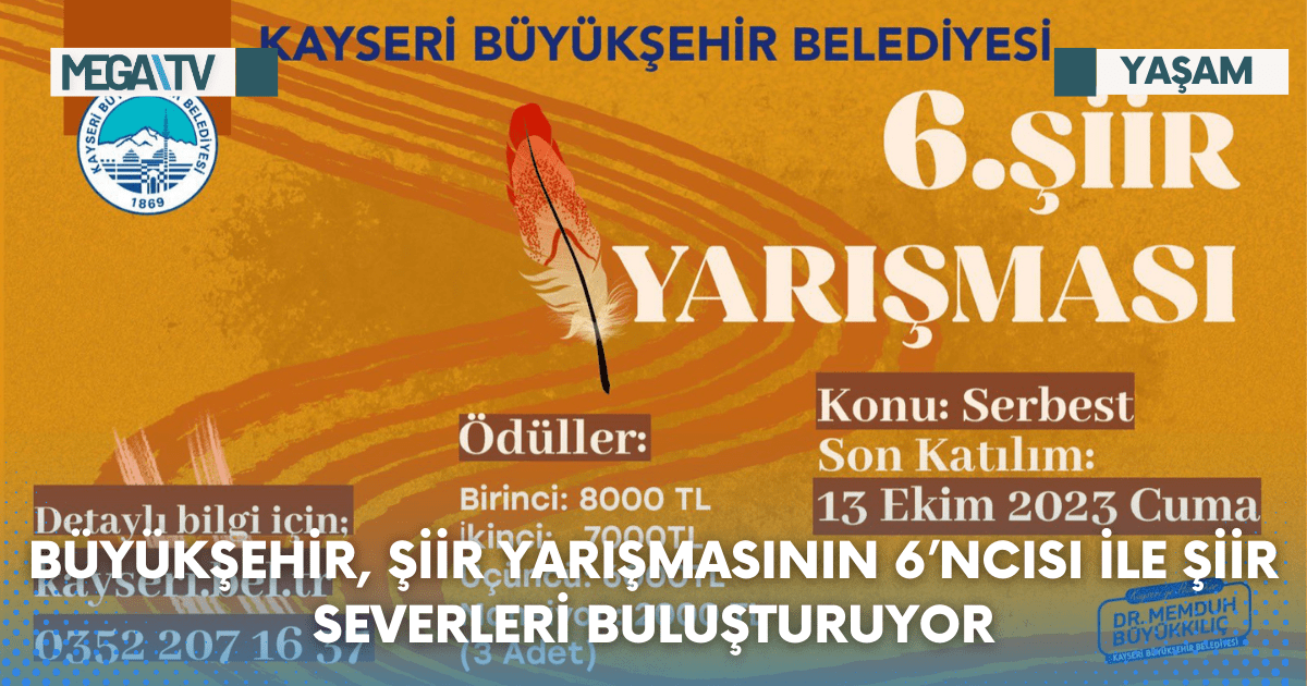 Kayseri Büyükşehir Belediyesi, Başkan Dr. Memduh Büyükkılıç’ın yönetiminde gerçekleştirdiği kültür ve sanat çalışmalarını sürdürürken, kentte sevilen ve ilgi gören şiir yarışmasının 6’ncısı şiir severlerle buluşuyor.