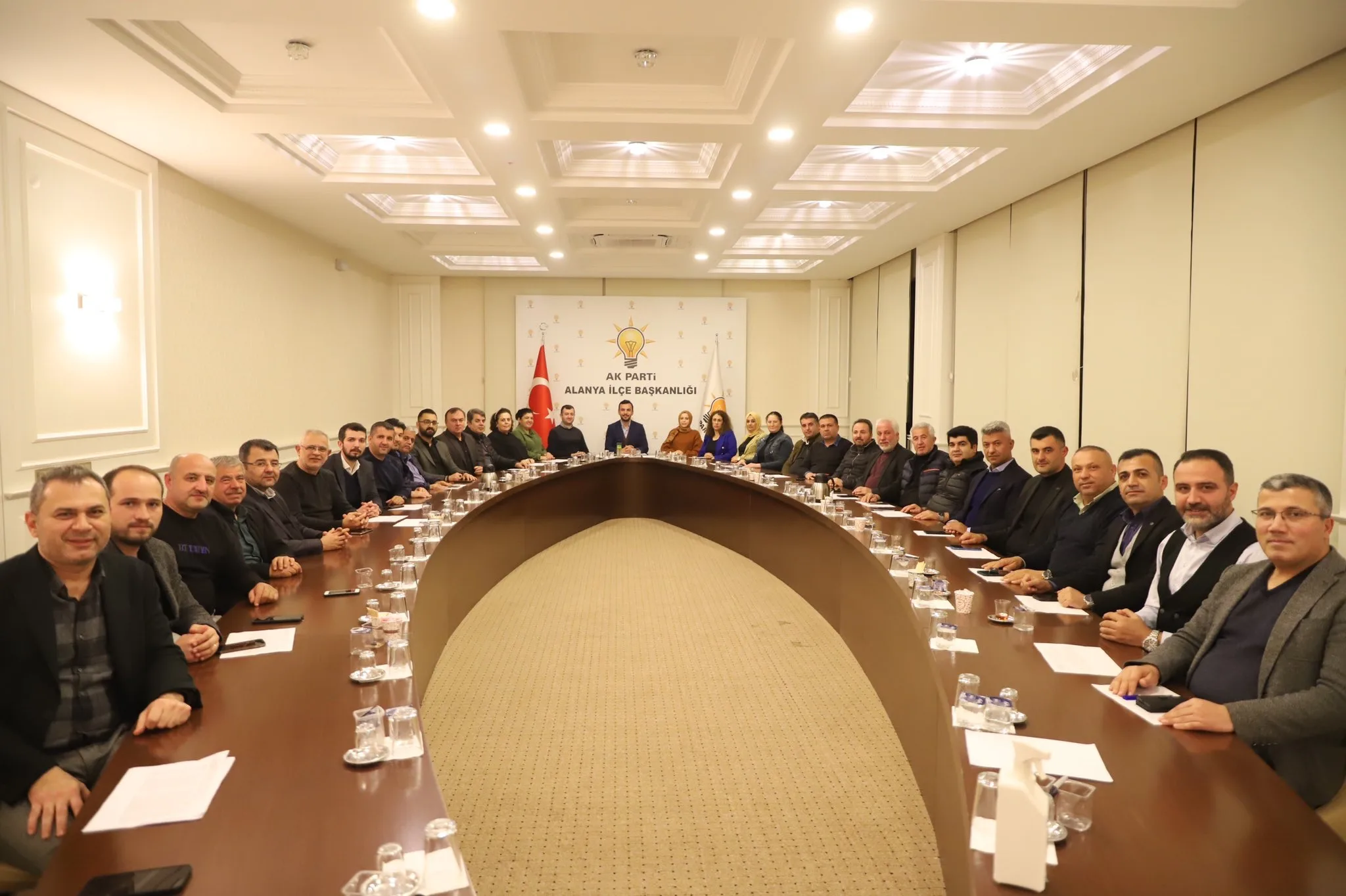 “Genel Başkanımız ve Cumhurbaşkanımız Sayın Recep Tayyip Erdoğan’ın teşrif edeceği, 7 Ocak 2023 Cumartesi günü Antalya’da düzenlenecek toplu açılış töreni için AK Parti Alanya İlçe Teşkilatı olarak, İl Teşkilatımızla birlikte koordineli bir şekilde Reisimize en güçlü desteği verebilmek için çalışmalarımız hızla sürüyor. Bugün 2022 yılının son Yönetim Kurulu Toplantısında, Yönetim Kurulu Üyelerimizle beraber Cumhurbaşkanımız Sayın Recep Tayyip Erdoğan’ı Antalya’mızda güçlü bir şekilde karşılamak için yapacağımız çalışmaların değerlendirmesini gerçekleştirdik.