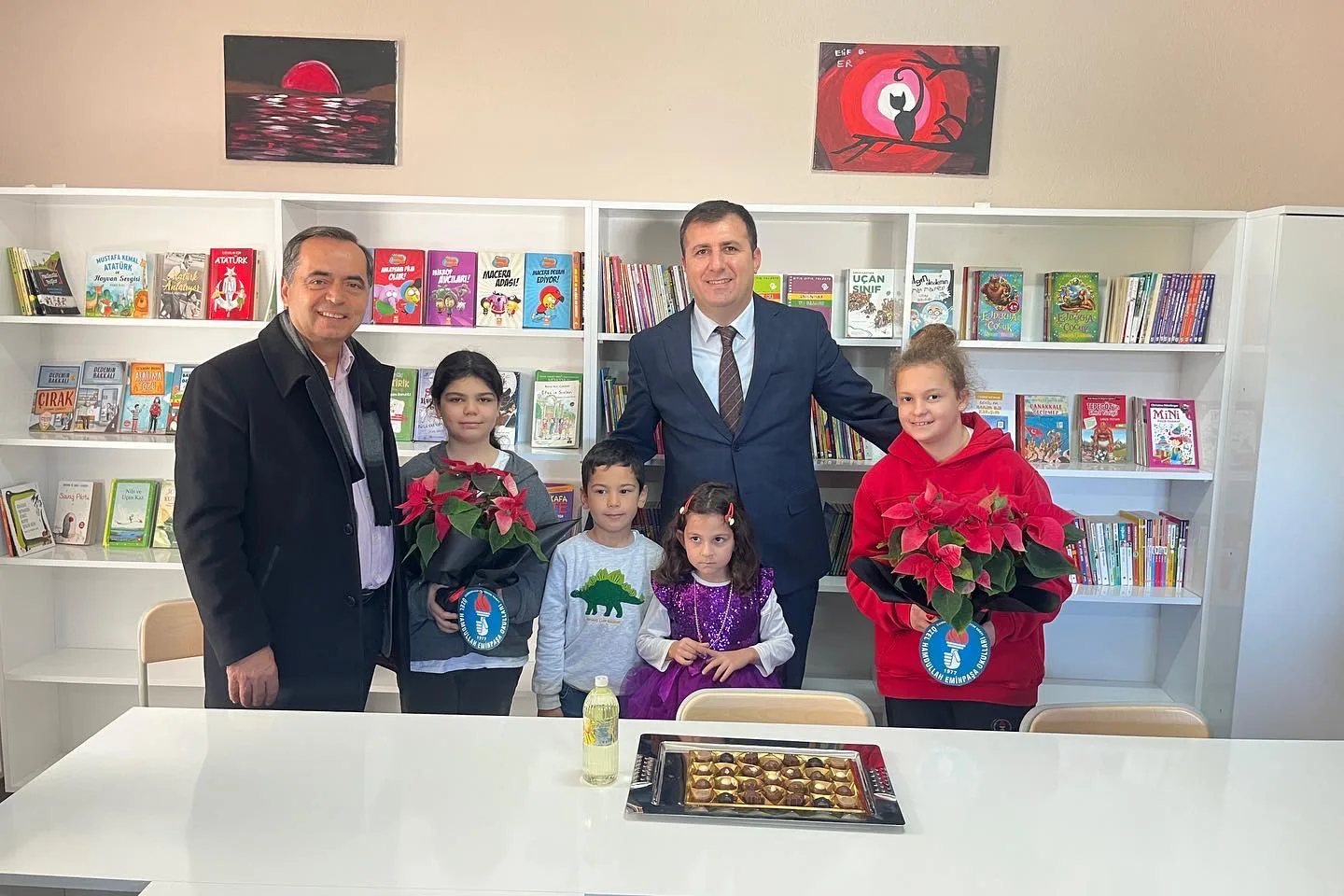 Hayırsever vatandaş ve velilerin yardımları ile yapılan kütüphane Sayın Kaymakamımız Orhan ALTUN, Belediye Başkanı Mehmet Ali YILMAZ ve protokol üyelerinin katılımı ile açıldı. Kaymakam ALTUN ve protokol üyeleri kitap okumanın önemini vurgulamak için öğrencilerle birlikte kitap okuma etkinliğine katıldı.