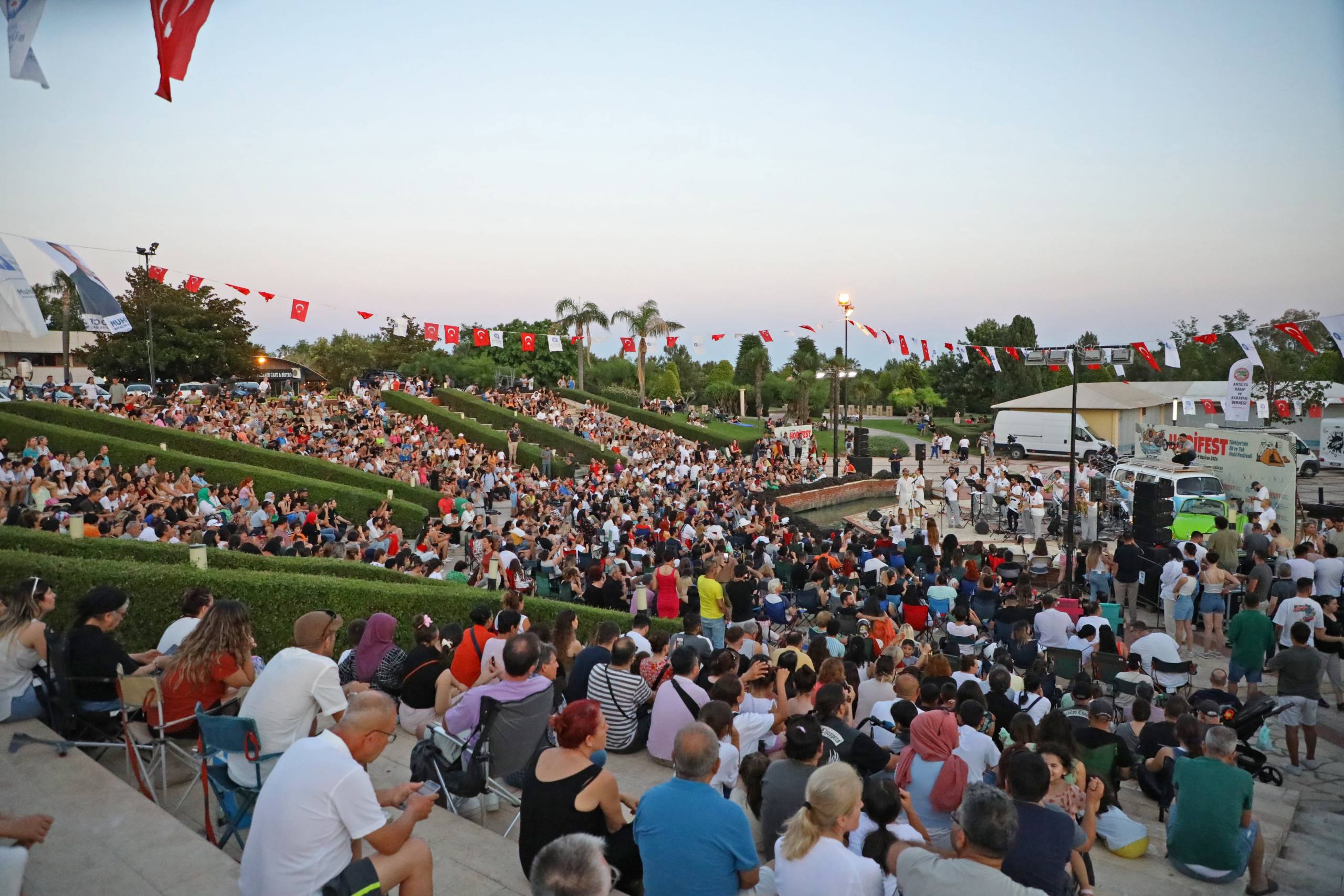 HobiFest 2024’ün son gününde dans gösterilerine ve konserlere ev sahipliği yaptı. Festivalin kapanışında İsmail Baha Sürelsan Konservatuvarı Genç Sahne Konseri, Dance Of Life Halk Oyunları gösterisi ile VoSahne ve Antalya Büyükşehir Belediyesi Bando ve Kent Orkestrası konser verdi. Cam Piramit alanında kurulan sahne alanını dolduran Antalyalılar VoSahne’nin seslendirdiği şarkılara eşlik ederek doyasıya eğlendi.