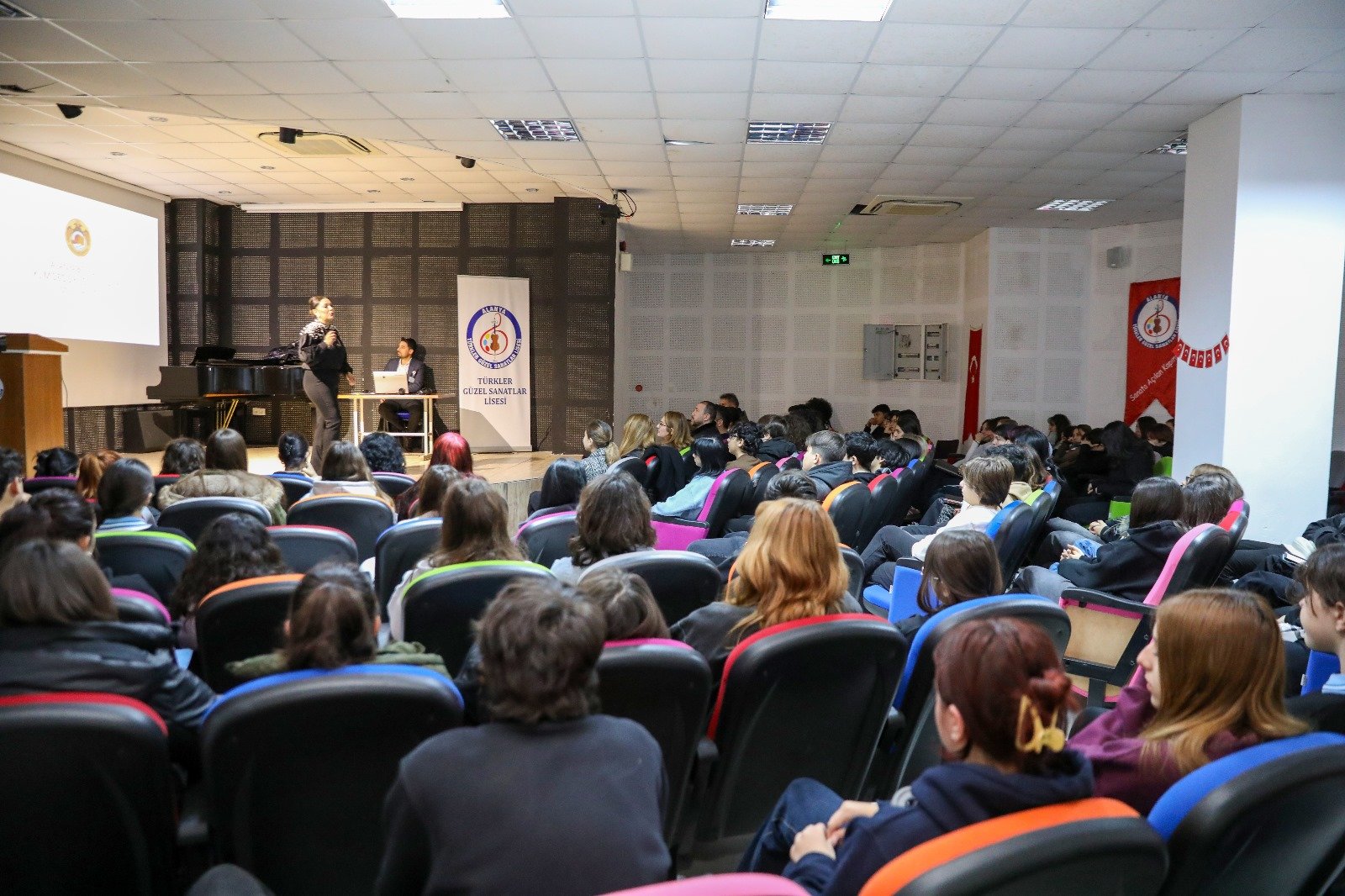 Alanya Belediyesi İklim Değişikliği ve Sıfır Atık Müdürlüğü tarafından okullarda gerçekleştirilen bilinçlendirme eğitimleri kapsamında Türkler Güzel Sanatlar Lisesi öğrencilerine, çevre ve iklim değişikliği eğitimi verildi.