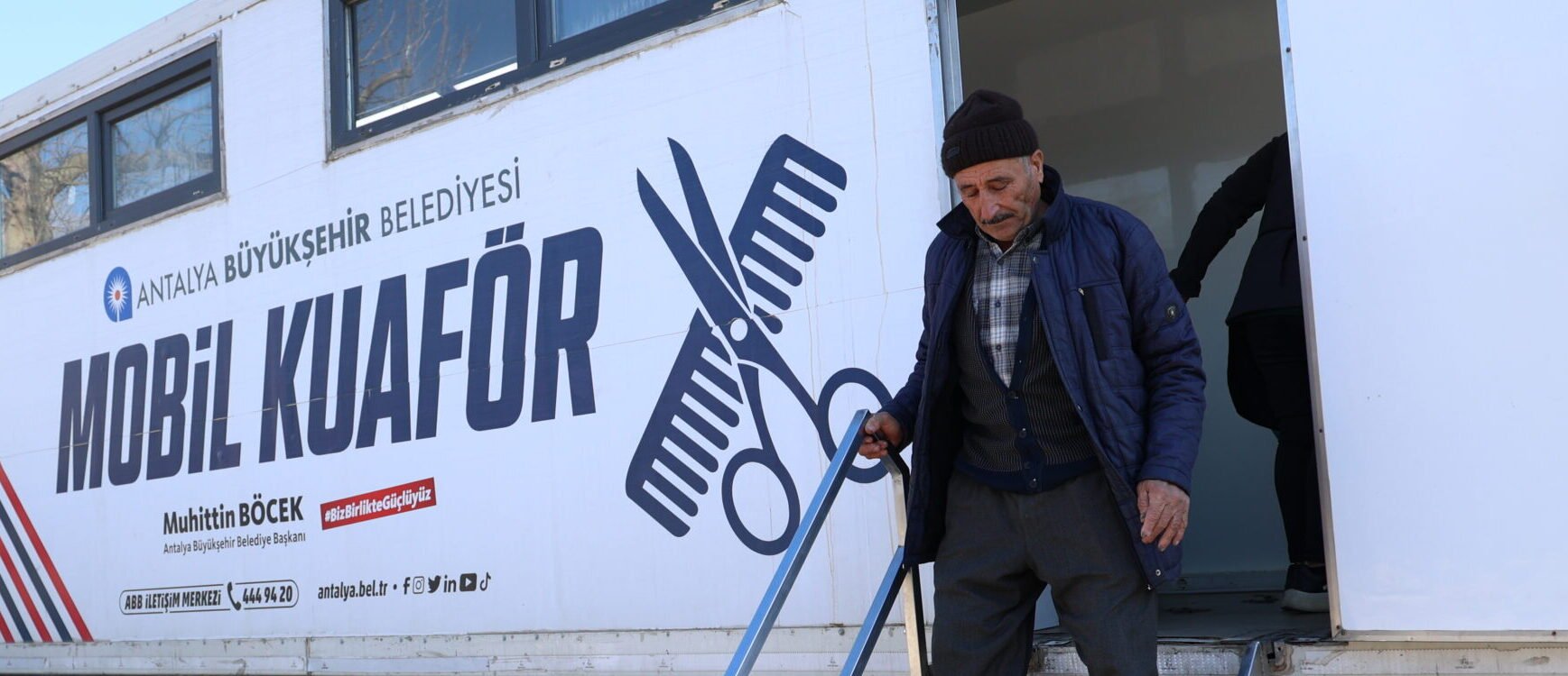 Antalya Büyükşehir Belediyesi Mobil Kuaför Tırı, yaşadığı yerde kuaför olmayan vatandaşlara kuaförlük hizmeti veriyor. Mobil Kuaför Tırı, köy köy dolayarak saç kesimi ve kişisel bakım hizmeti veriyor. Hasta ve yatalak vatandaşların evlerine kadar giden Mobil Kuaför, 6 yılda 47 bin 801 vatandaşa hizmet verdi.