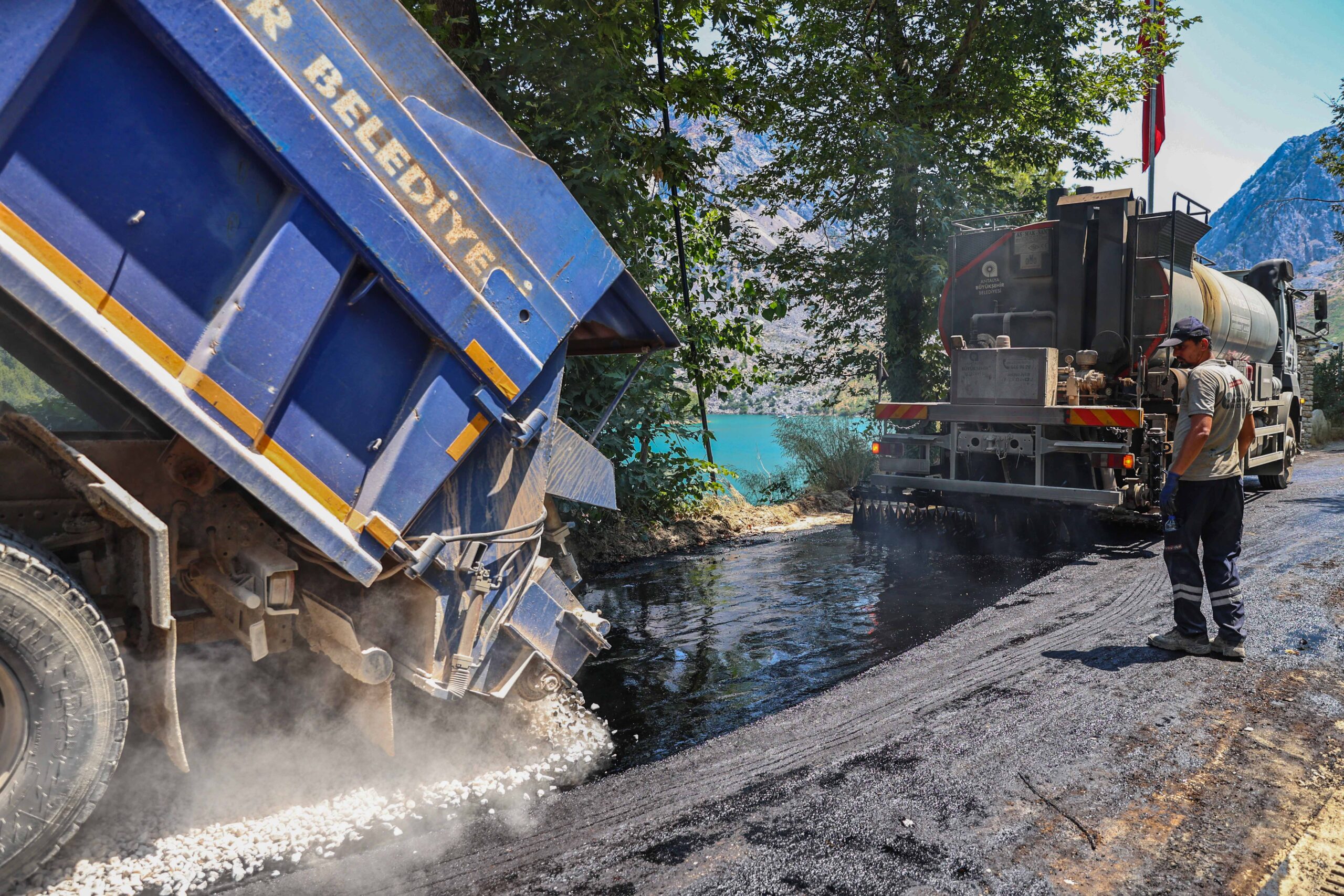 Antalya Büyükşehir Belediyesi, Manavgat ilçesindeki Oymapınar Barajı çevresinde yer alan ve Akseki ile Manavgat’ı birbirine bağlayan grup yollarında kapsamlı bir asfaltlama çalışması başlattı. Bölge halkının yanı sıra yerli ve yabancı turistlerin sıkça kullandığı güzergâh, kısa süre içinde daha güvenli ve konforlu bir hale geliyor.