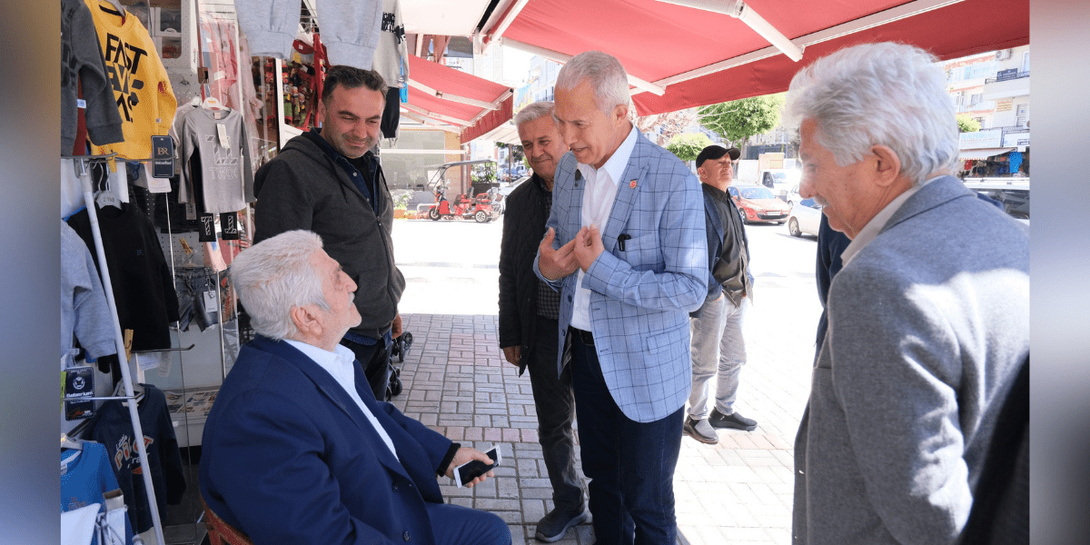 CHP Alanya Belediye Başkan Adayı Osman Tarık Özçelik, Cuma Pazarı bölgesindeki merkez çarşıda esnaf ziyareti yaptı ve vatandaşlarla sohbet etti.