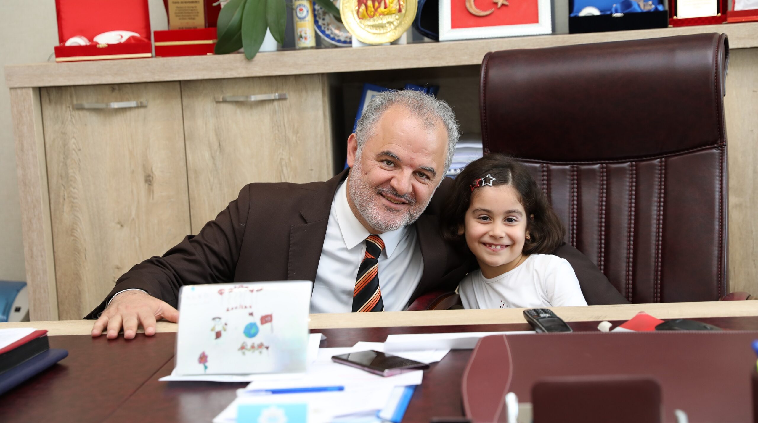 23 Nisan Ulusal Egemenlik ve Çocuk Bayramı dolayısıyla ALKÜ Mühendislik Fakültesi Dr. Öğr. Üyesi Aslı Erkal Aytemur’un minik oğlu Eren Aytemur, Rektör Türkdoğan’ı ziyaret ederek sohbet etti. Sohbetin ardından Rektör Türkdoğan, minik Eren’e Alanyaspor forması ve atkısı hediye etti. Bir başka ziyarette ise Kestel Alantur Ayhan Şahenk İlkokulu 4. sınıf öğrencisi olan Ela Gözlüklü, Sınıf Öğretmeni Banu Harmankaya ve Okul Müdürü Veli Uğur ile Rektör Prof. Dr. Kenan Ahmet Türkdoğan’ı makamında ziyaret etti. Rektör Türkdoğan’ın koltuğuna oturan Ela, makamda bulunmaktan mutluluk duyduğunu ifade ederek “Bu koltukta oturmak, çocuklara duyulan güvenin simgesidir. Bizler de gelecekte ülkemize, bilime ve insanlığa faydalı bireyler olmak için elimizden gelenin en iyisini yapacağız. Bu anlamlı günde bana bu fırsatı verdikleri için başta Sayın Rektörümüz olmak üzere tüm üniversite yönetimine teşekkür ediyorum. 23 Nisan Ulusal Egemenlik ve Çocuk Bayramı’mız kutlu olsun!” dedi.