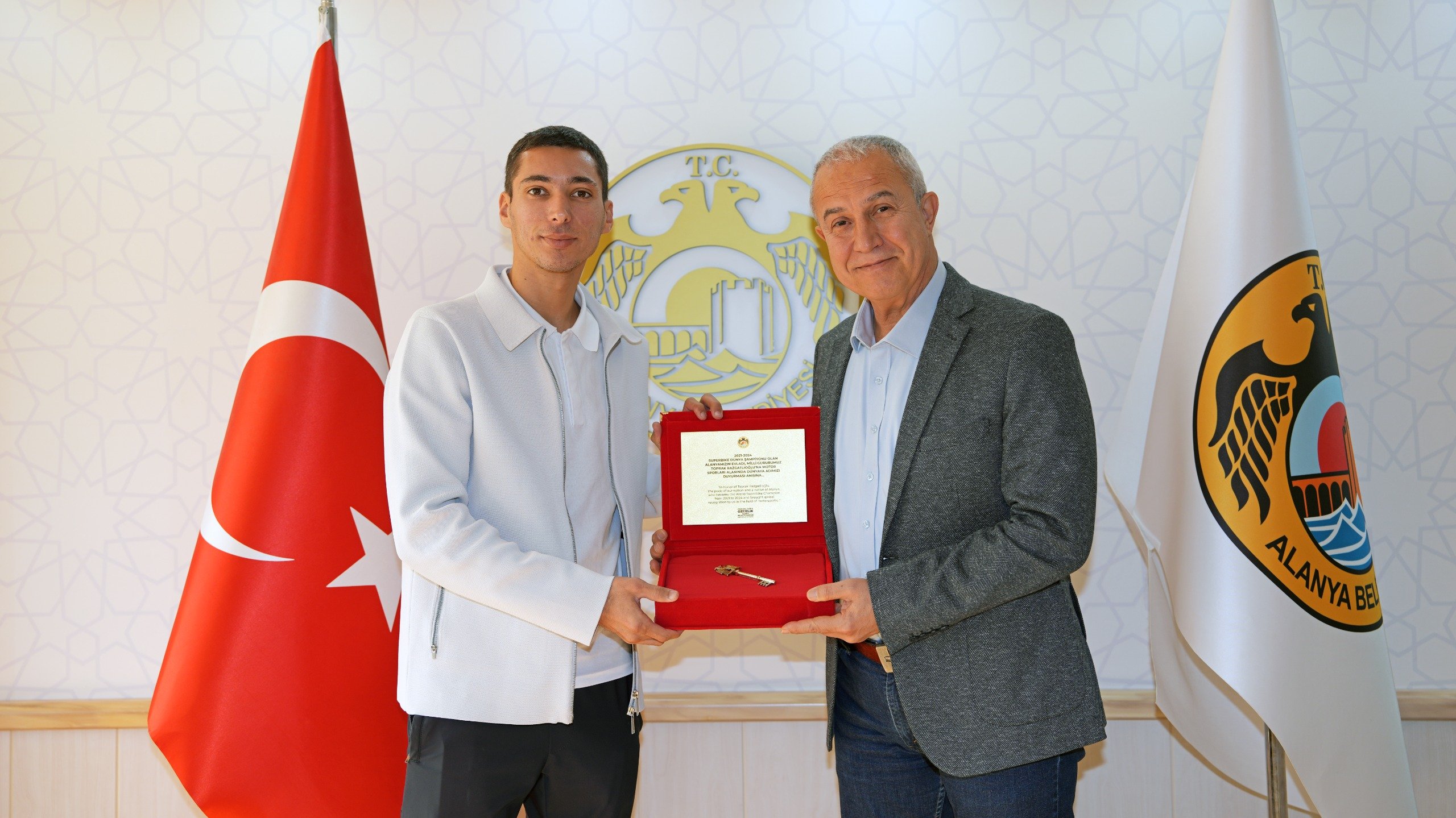 Dünya Superbike Şampiyonu milli motosikletçi Toprak Razgatlıoğlu, doğup büyüdüğü Alanya'da Belediye Başkanı Osman Tarık Özçelik’i makamında ziyaret etti. Motor sporlarında…