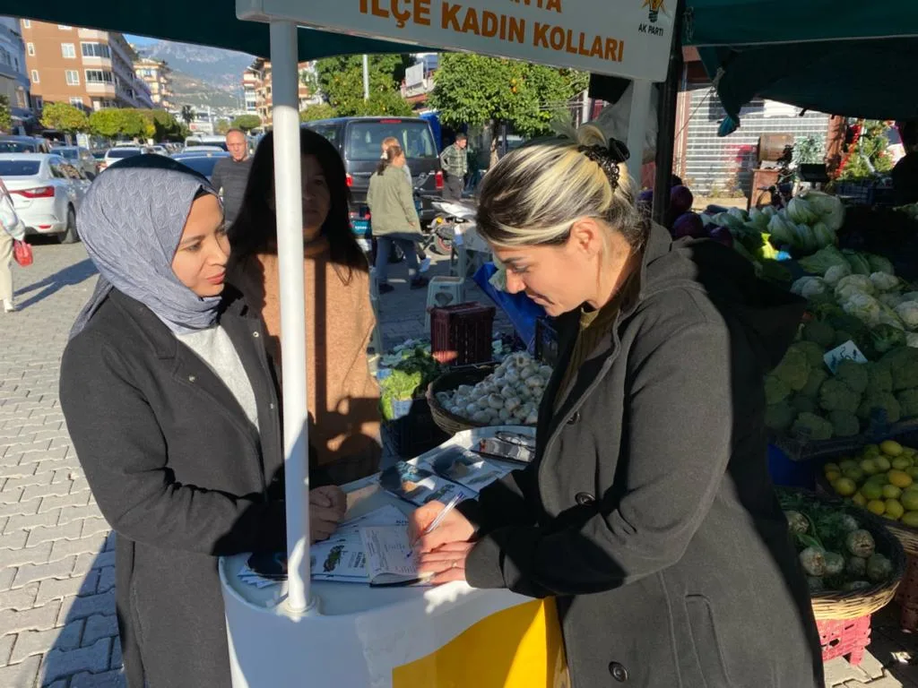 AK Parti Alanya Kadın Kolları mahalle pazarlarında stand kurup, ev ziyaretleri gerçekleştirerek partilerine yeni üyeler kazandırmaya devam ediyorlar.
