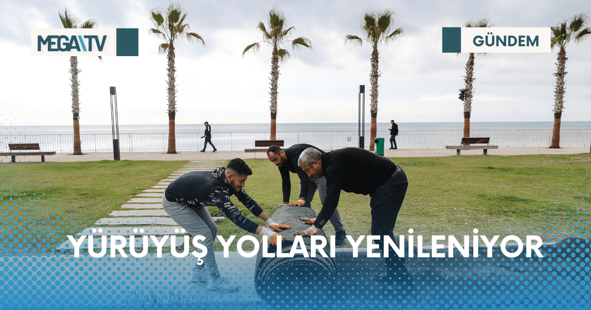 Antalya Büyükşehir Belediyesi kış aylarında olumsuz hava koşullarından etkilenen Konyaaltı Sahili yürüyüş yolunun kauçuk zeminini yeniliyor.